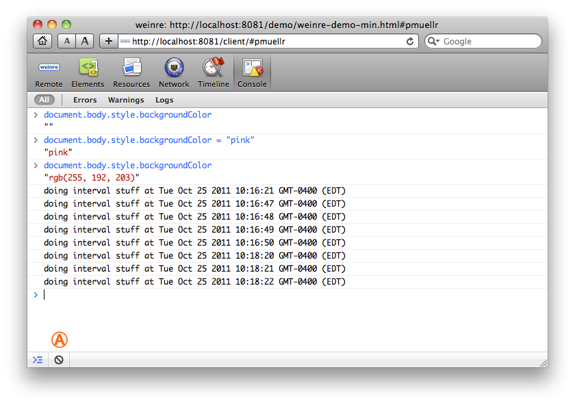 This page describes the user interface provided by weinre.